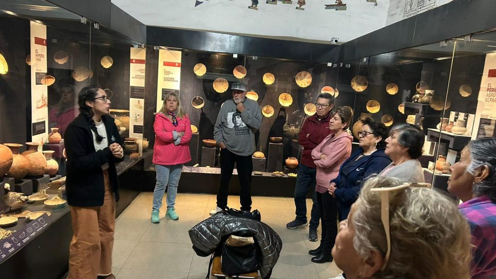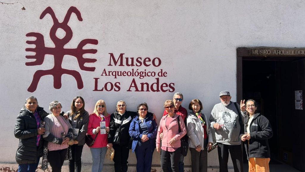 Un grupo de adultos mayores de la comuna participa esta jornada en una visita guiada al Museo Arqueológico de Los Andes, instancia que incluye recorridos, charlas y actividades especialmente diseñadas para fomentar el aprendizaje y la participación activa.
