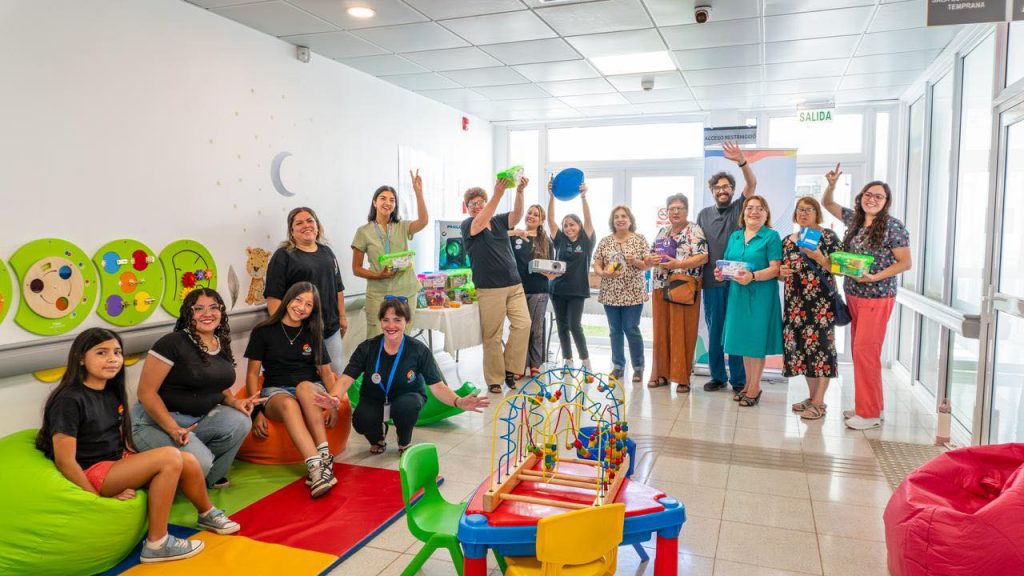 Asimismo, y como parte de esta iniciativa, la Agrupación TEA Rinconada realizó la donación de un juego mural de estimulación y cuatro puff infantiles, los que fueron destinados a fortalecer la sala de espera infantil del CESFAM de Rinconada, favoreciendo tiempos de espera más adecuados y la creación de un espacio seguro, acogedor e inclusivo para niños, niñas y sus familias.