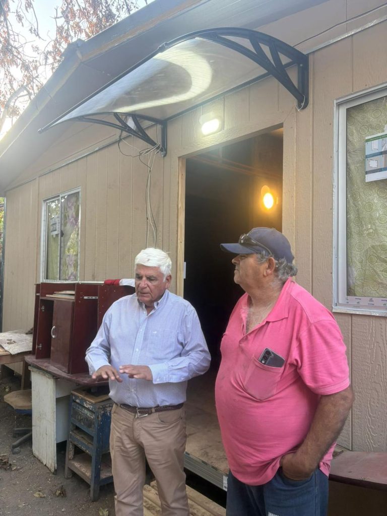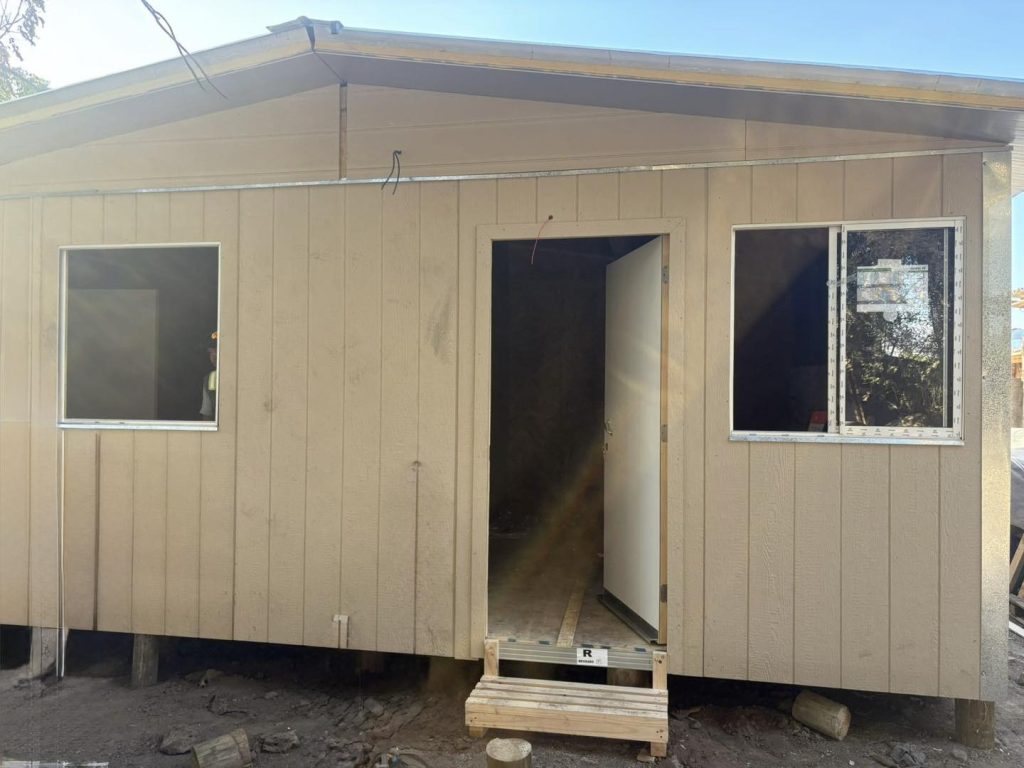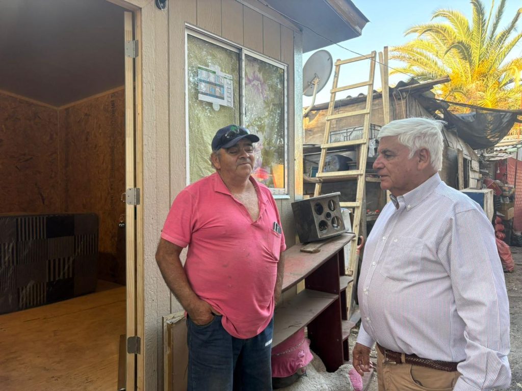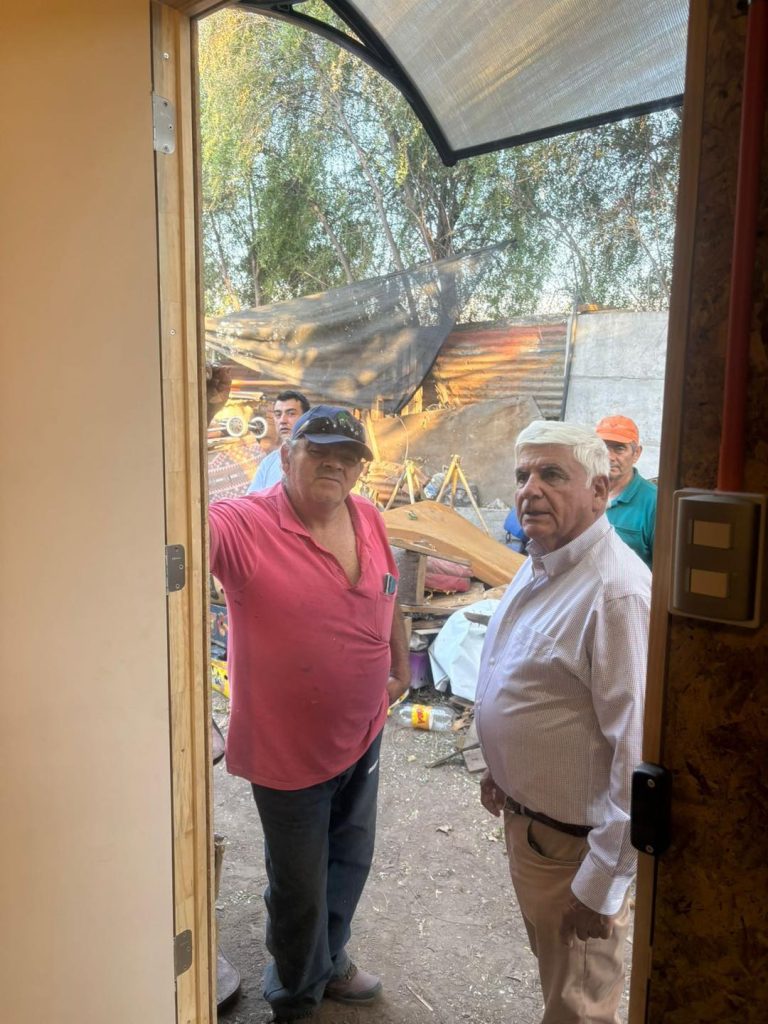 Para verificar el estado de avance de la construcción de la vivienda de emergencia entregada por el municipio, el alcalde de Rinconada, Juan Galdames Carmona, llegó hasta la Villa España, en apoyo a la familia que perdió su hogar en un incendio ocurrido a mediados de marzo.