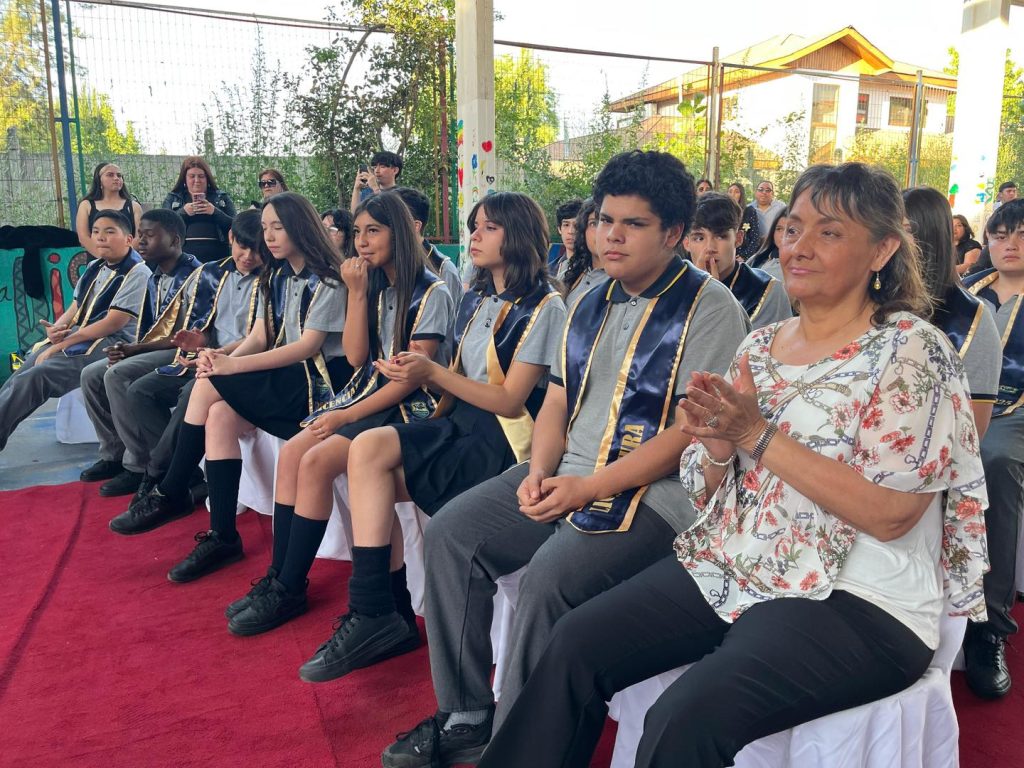 En la oportunidad, los alumnos de los tres octavos básicos recibieron sus diplomas de egreso, además de una mochila, lonchera y una gift card para la compra de calzado escolar, elementos que simbolizan el apoyo del establecimiento en su transición hacia la nueva etapa educativa.