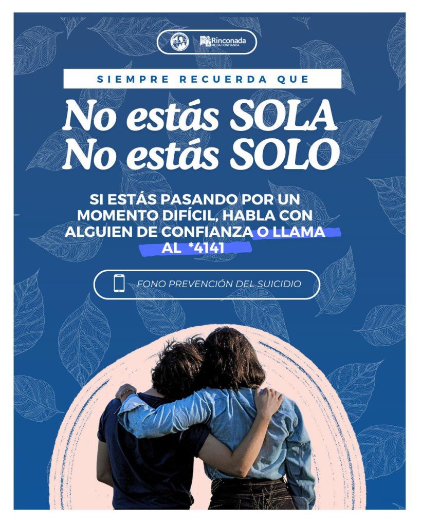 A través de una gráfica, el área de salud municipal recuerda la línea telefónica *4141, a la cual cualquier persona que esté enfrentando una emergencia o crisis de salud mental asociada al suicidio, puede llamar para contactarse con un psicólogo especialmente capacitado para escucharla y ayudarla.