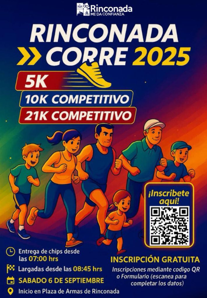 Con récord de participantes se disputará el próximo sábado 6 de septiembre la VIII versión de “Rinconada Corre”, evento pedestre que contempla las distancias de 21K, 10K y 5K.