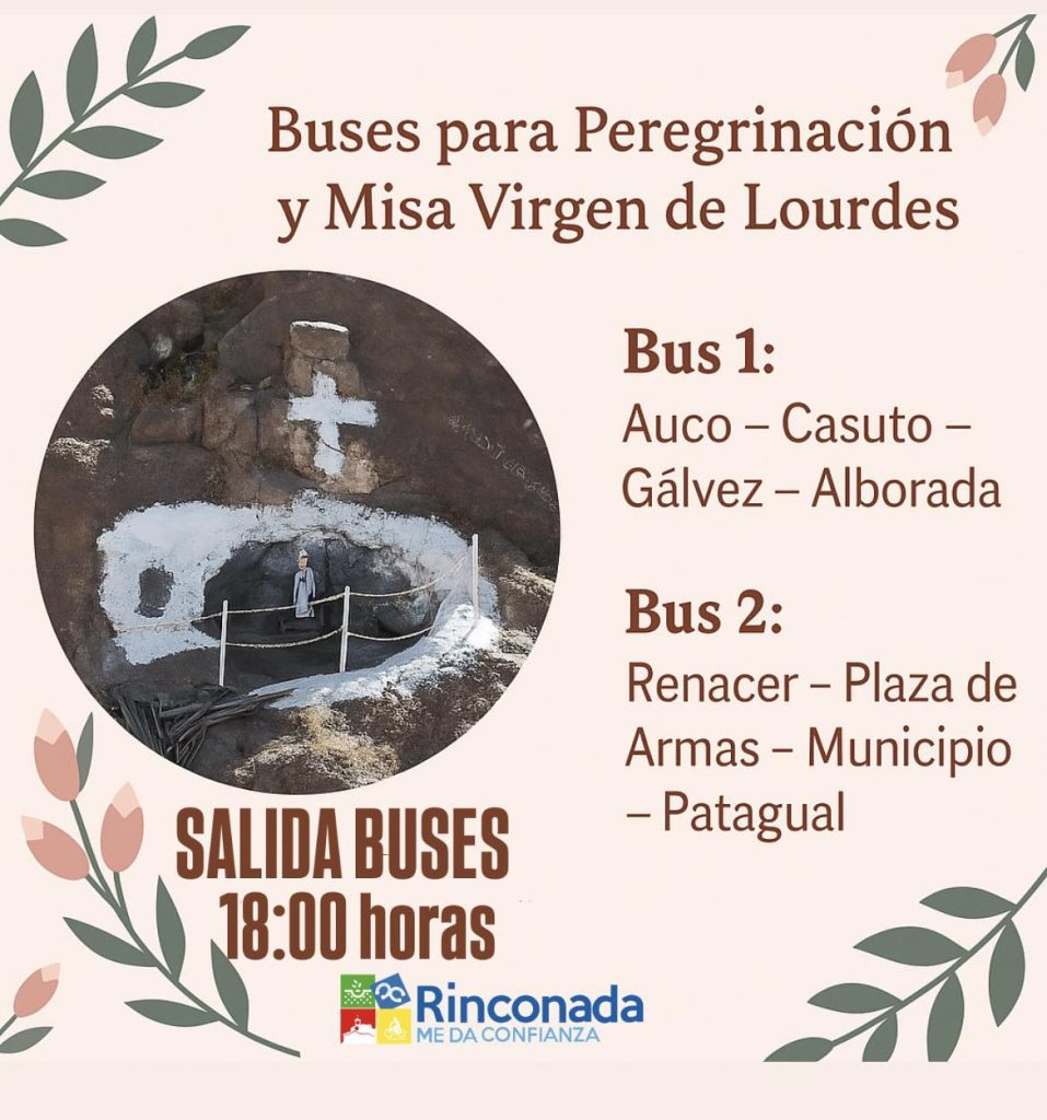 DESDE AUCO Y RENACER SALDRÁN BUSES PARA TRASLADAR A VECINOS A LA PEREGRINACIÓN Y MISA EN HONOR A LA VIRGEN DE LOURDES