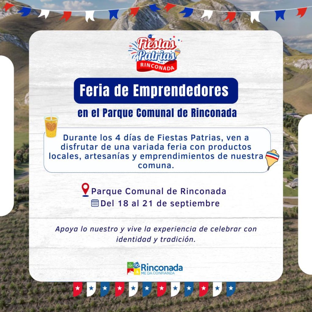 La feria funcionará en paralelo a las actividades oficiales de Fiestas Patrias en Rinconada, consolidándose como un punto de encuentro entre vecinos y visitantes que buscan rescatar lo mejor de la artesanía y los sabores locales.