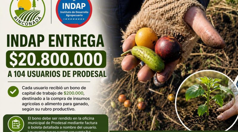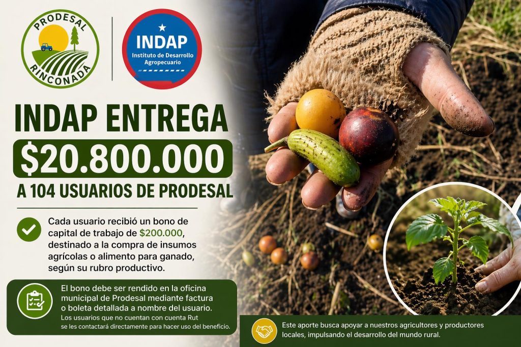 INDAP ENTREGA MÁS DE $20 MILLONES A 104 USUARIOS DE PRODESAL RINCONADA