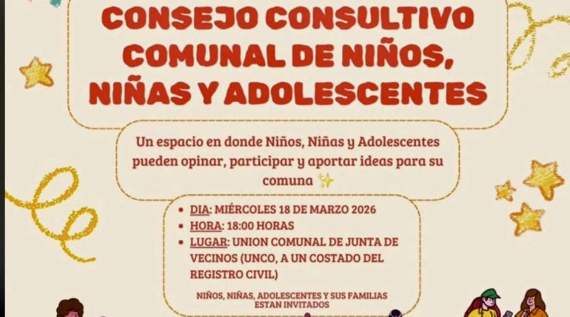 La Oficina Local de la Niñez, junto al programa Chile Crece Más, invita a la comunidad a participar en la Reunión Informativa del Consejo Consultivo Comunal de Niños, Niñas y Adolescentes, instancia que busca promover la participación de las nuevas generaciones en temas que impactan el desarrollo de la comuna.