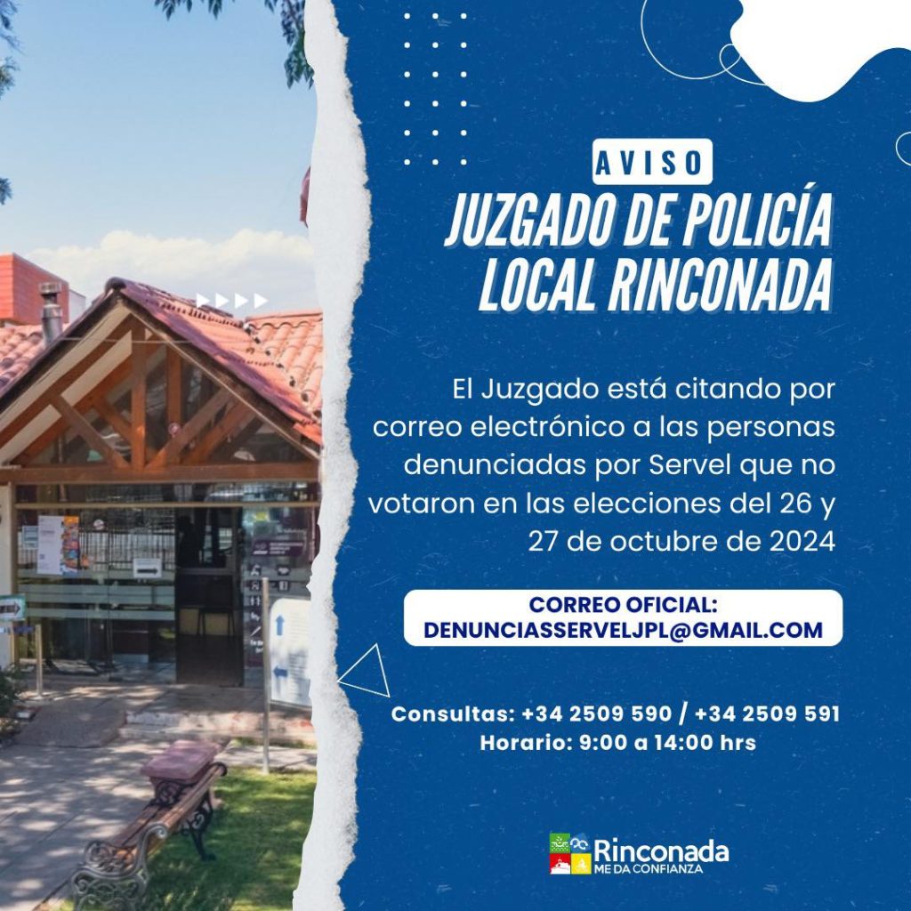 JUZGADO DE POLICÍA LOCAL DE RINCONADA CITA A PERSONAS DENUNCIADAS POR SERVEL QUE NO CONCURRIERON A VOTAR