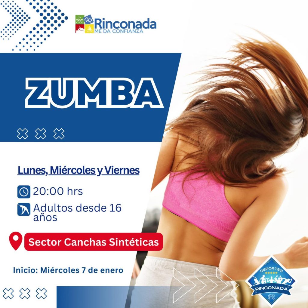 .-Zumba: Lunes, miércoles y viernes, a las 20:00 horas, canchas sintéticas.