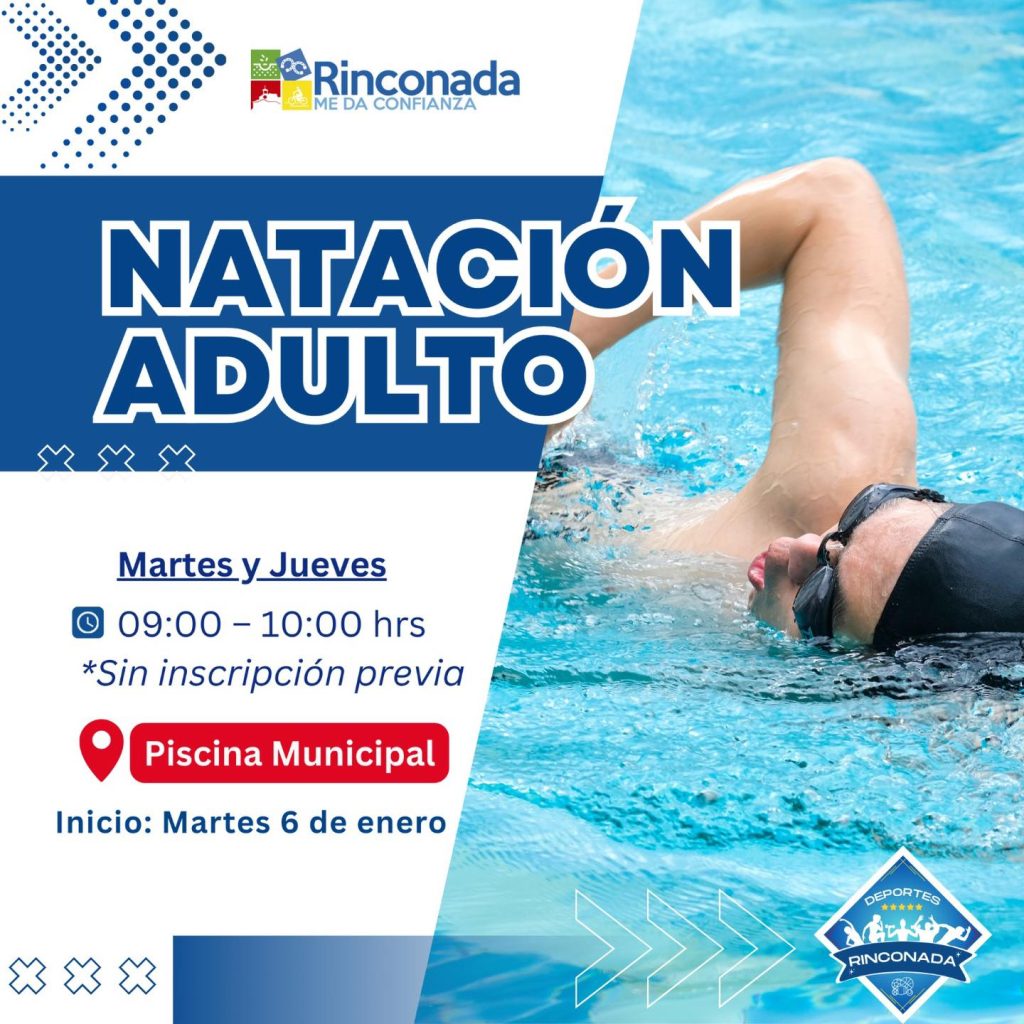 .-Natación Adultos: Martes y jueves, de 09:00 a 10:00 horas, Piscina Municipal.