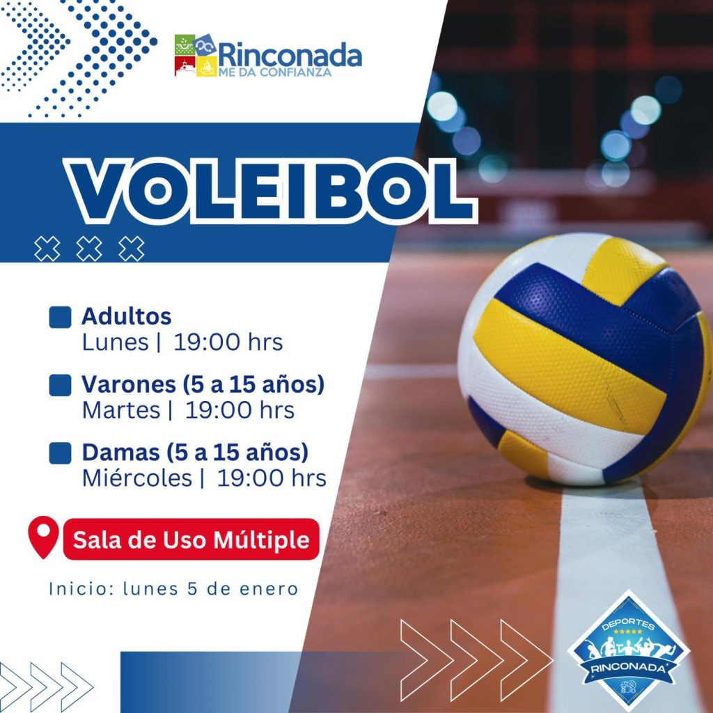 .-Voleibol: Adultos: Lunes, 19:00 horas, Varones (5 a 15 años): Martes, 19:00 horas; Damas (5 a 15 años): Miércoles, 19:00 a 21:00 horas.