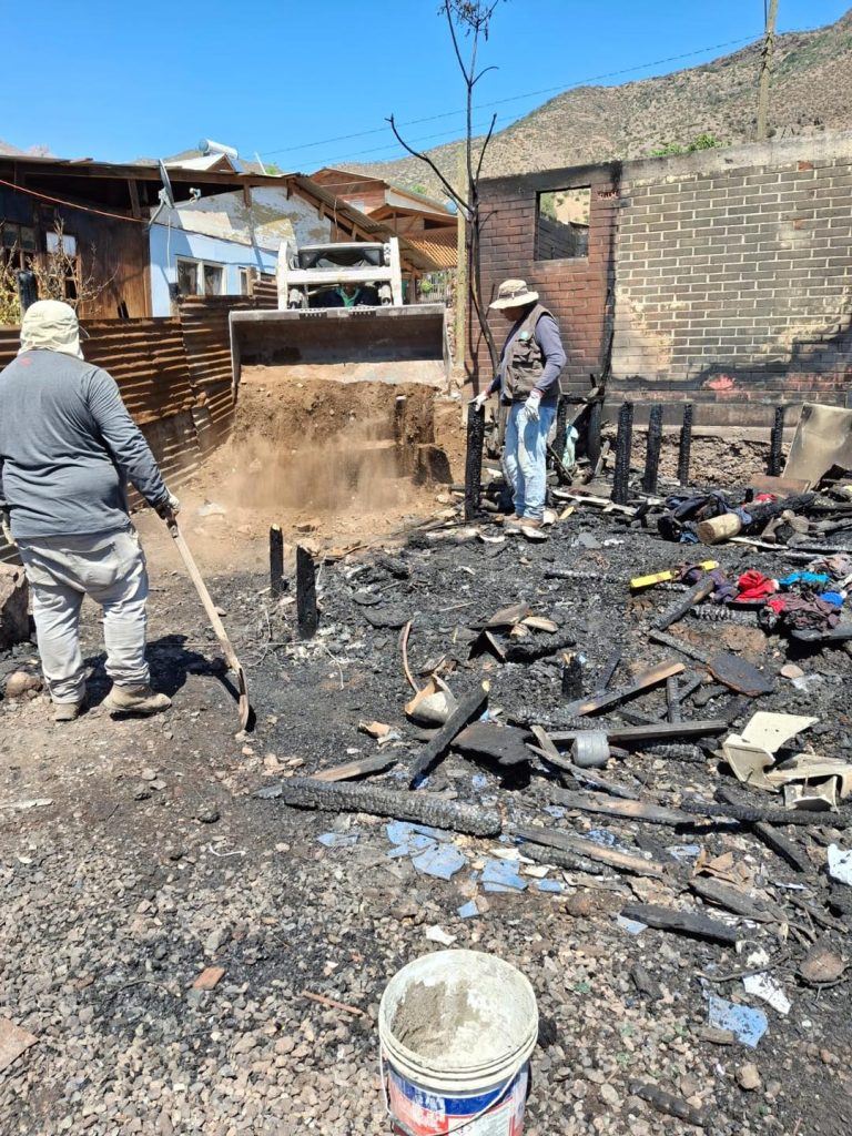 Equipos municipales trabajan en terreno para apoyar a la familia damnificada.
