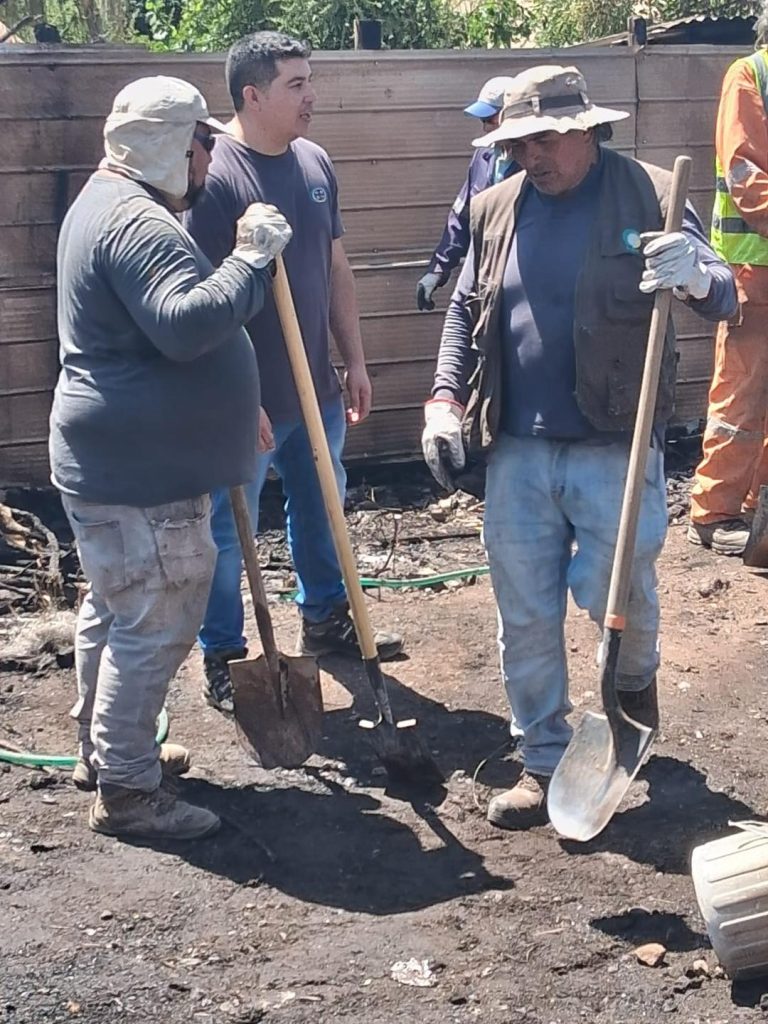 Con el propósito de coordinar la primera respuesta y canalizar el apoyo hacia la familia afectada por el incendio que redujo a cenizas la vivienda que habitaban en el sector Mina Caracoles, la alcaldesa(s) Marcela Silva Morales y el concejal Wilson López llegaron esta mañana hasta el lugar siniestrado, acompañados por equipos operativos y profesionales municipales.