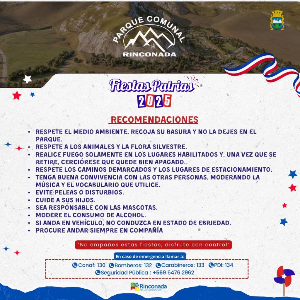 Con el fin de resguardar la seguridad de los visitantes y promover una convivencia armónica durante las celebraciones de Fiestas Patrias en el Parque Comunal, el municipio se encuentra difundiendo una serie de recomendaciones dirigidas a la comunidad.