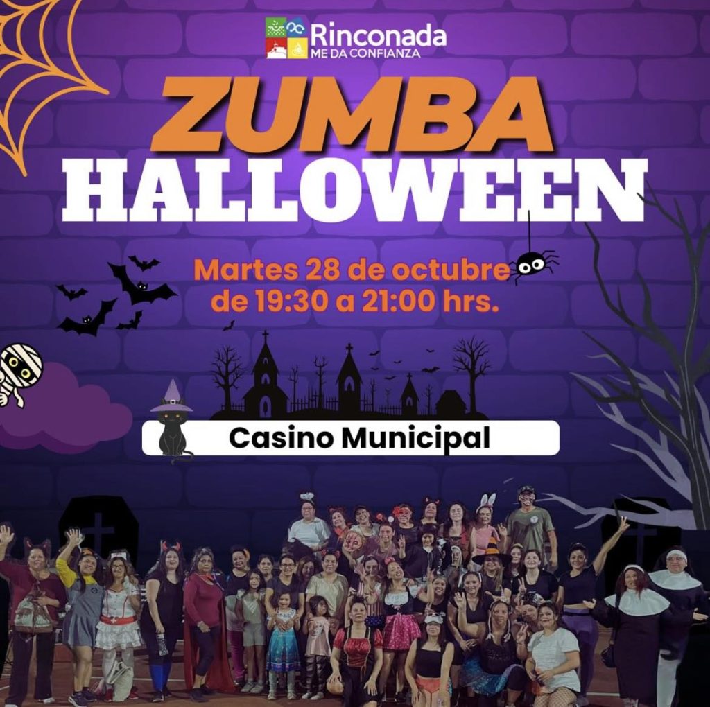 La Municipalidad de Rinconada, invita a participar en una nueva edición de “Zumba Halloween”, una entretenida jornada que combinará baile, disfraces y energía.