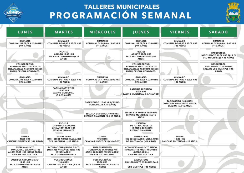 El municipio dio a conocer la programación de talleres deportivos para la comunidad, iniciativa que busca fomentar la actividad física, promover hábitos de vida saludable y generar espacios de participación para personas de distintas edades.