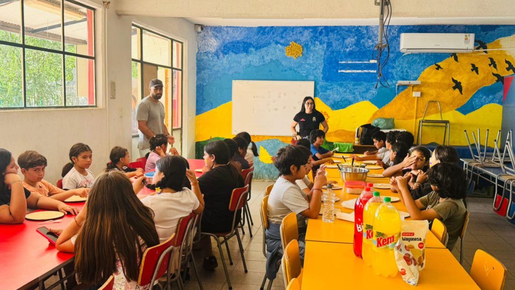 Durante el taller, los niños prepararon fajitas de manera conjunta, aprendiendo sobre alimentación saludable en un ambiente participativo y lúdico, fortaleciendo además valores como el compañerismo y el trabajo en equipo.