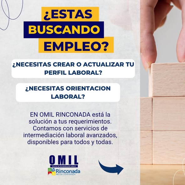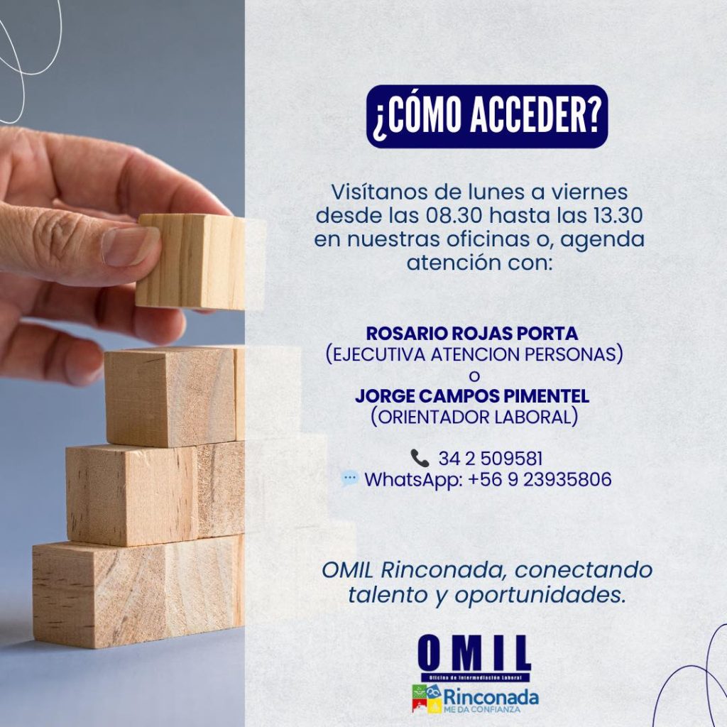 El equipo OMIL —dependiente del municipio— entrega atención directa a quienes buscan insertarse o reinsertarse en el mundo del trabajo, ofreciendo servicios gratuitos de intermediación laboral, disponibles para toda la comunidad rinconadina.