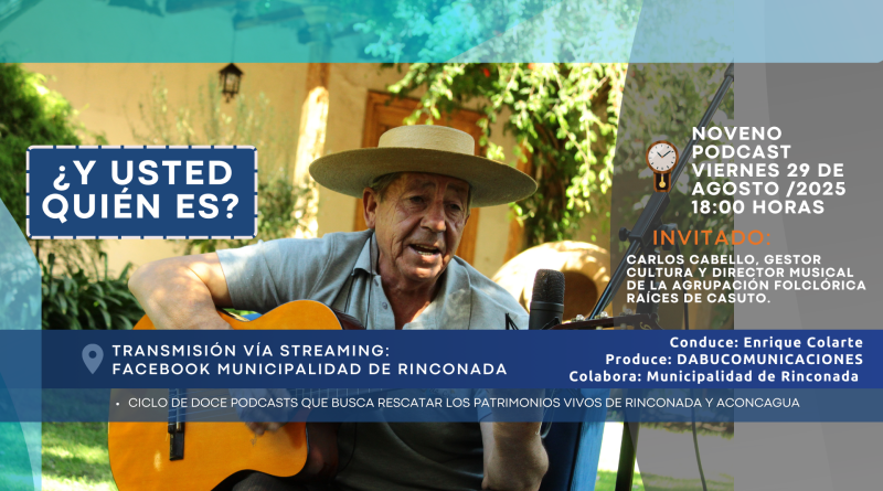 ESTE VIERNES 29 DE AGOSTO SE EXHIBIRÁ EL NOVENO CAPÍTULO DE ¿Y USTED QUIÉN ES? DEL PRIMER CICLO DE PODCASTS PARA RESCATAR LA MEMORIA VIVA DE RINCONADA Y ACONCAGUA.