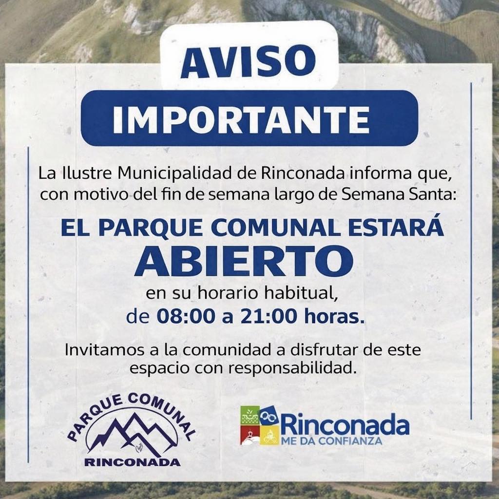 PARQUE COMUNAL ESTARÁ ABIERTO ESTE FIN DE SEMANA LARGO