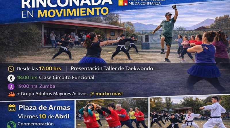 La actividad se desarrollará en la Plaza de Armas y comenzará a las 17:00 horas con la presentación del taller de Taekwondo, continuará a las 18:00 horas con una clase de circuito funcional y finalizará a las 19:00 horas con Zumba, en una programación abierta a toda la comunidad.
